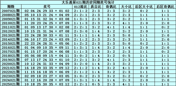 体彩大乐透第2026021期历史同时开奖号码分析: