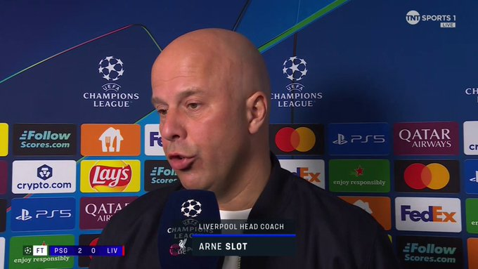 虎扑04月09日讯利物浦主汲引斯洛特在0-2输给巴黎圣日耳曼的欧冠首回合赛后,收受TNTSport瞬采。