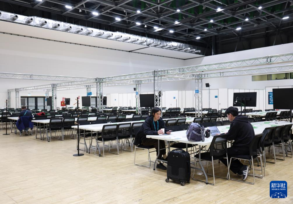 1月28日,责任主说念主员在主媒体中心休息、换取。