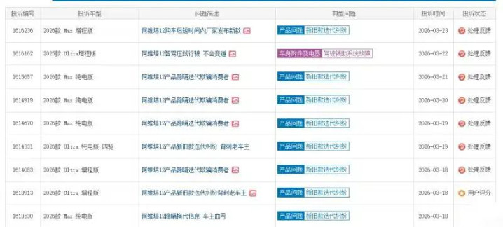 上市仅 73 天便推出中枢设置全面升级的大改款,阿维塔12老车主际遇车辆大幅贬值、权力受损,激发投诉。落拓当今,第三方投诉平台关系已有多起投诉,而阿维塔尚未给出官方回话,这场维权风云也折射出新动力车企快速迭代下的滥用者权力保护苦闷。