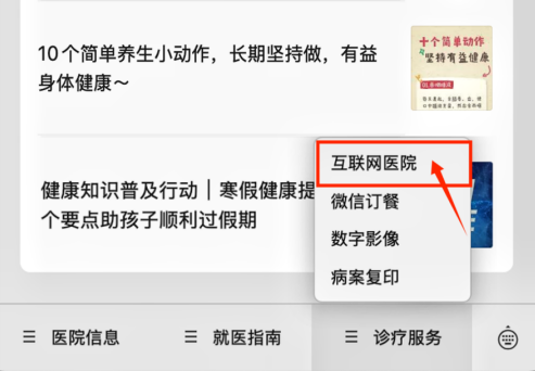 1.微信公众号搜索并赞佩“烟台毓璜顶病院就业号”或“烟台毓璜顶病院”,聘用诊疗就业插足互联网病院。