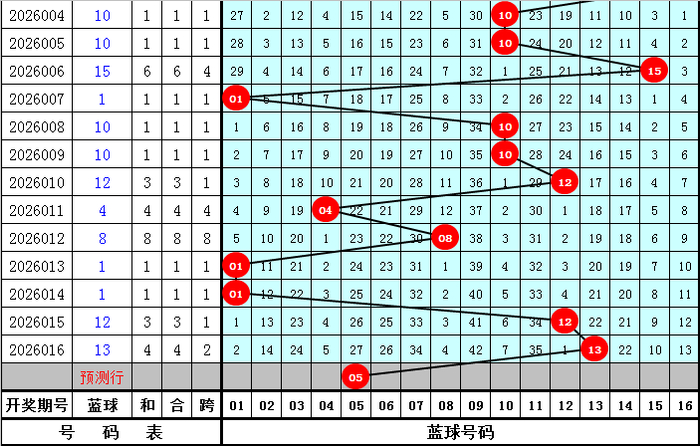 蓝球分析:第2026016期开出蓝球13,最近10期蓝球号码遗漏期数分别为:29期、2期、0期、24期、10期、12期、5期、0期、4期、22期,第2026017期蓝球注意05-15段出号,重点关注2路蓝球,参考蓝球:05。