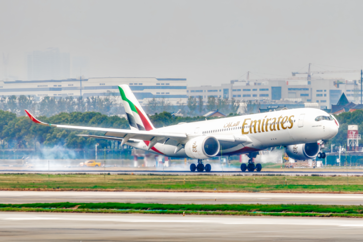 阿联酋航空的飞机在杭州机场腾飞图源:杭州机场