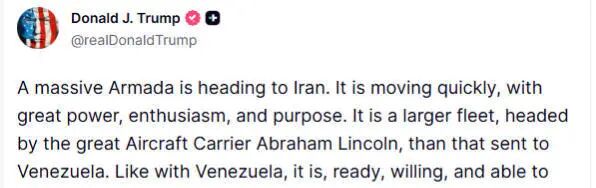 △1月28日,好意思总统特朗普在社交媒体上发布声明(部分截图)