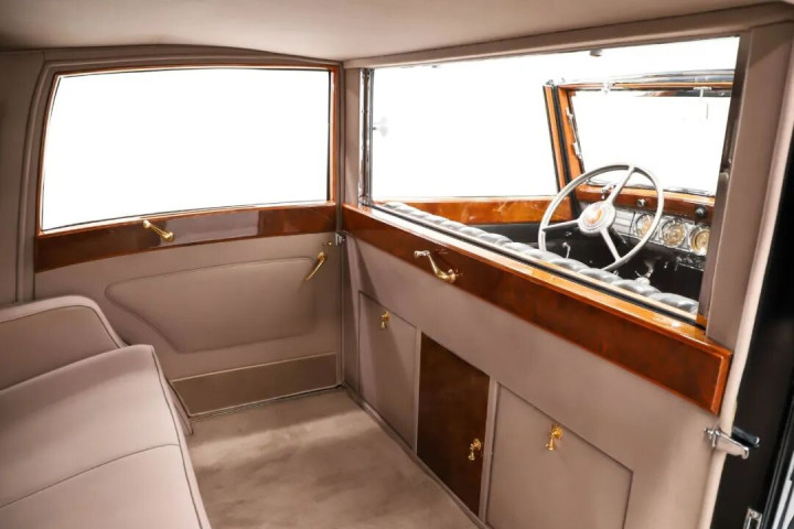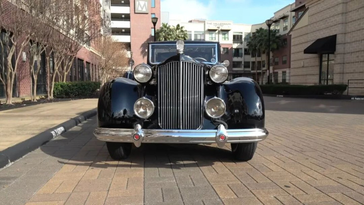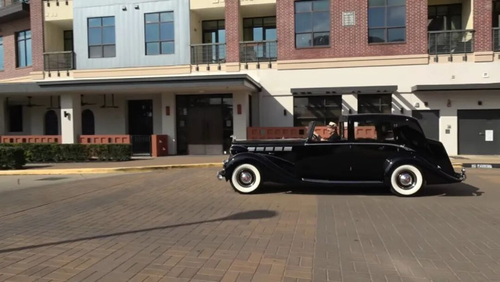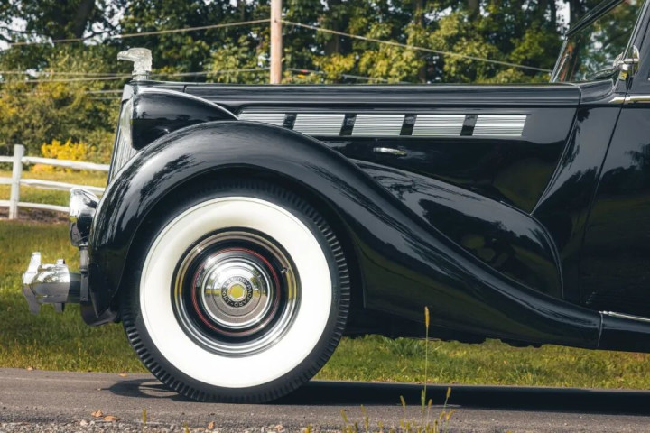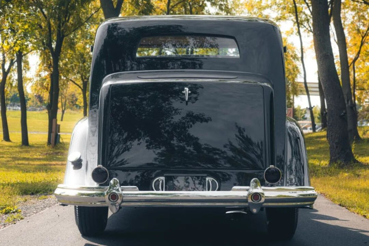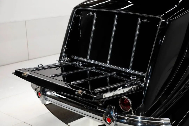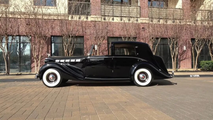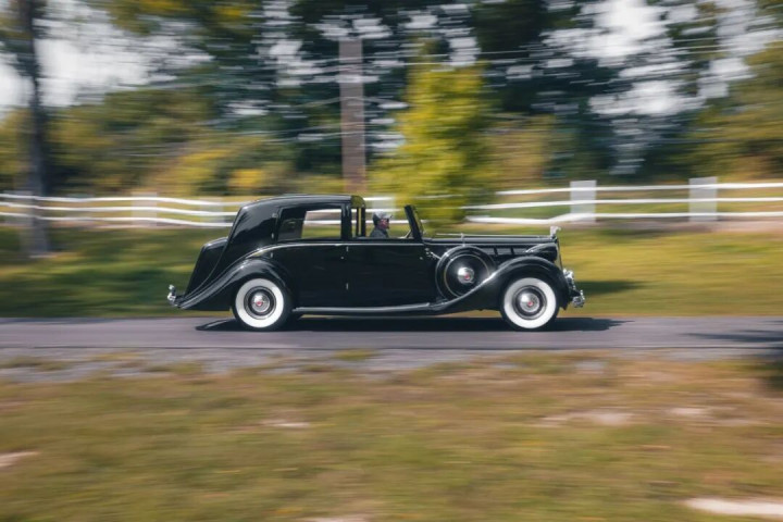 于是在1930年代末,他专门购置一台1938款帕卡德Super Eight底盘,躬行手绘筹办草图,条目复刻劳斯莱斯Sedanca DeVille豪华轿车的经典姿态,随后将底盘跨海运往英国,交由Barkers and Co.量身打造专属车身。