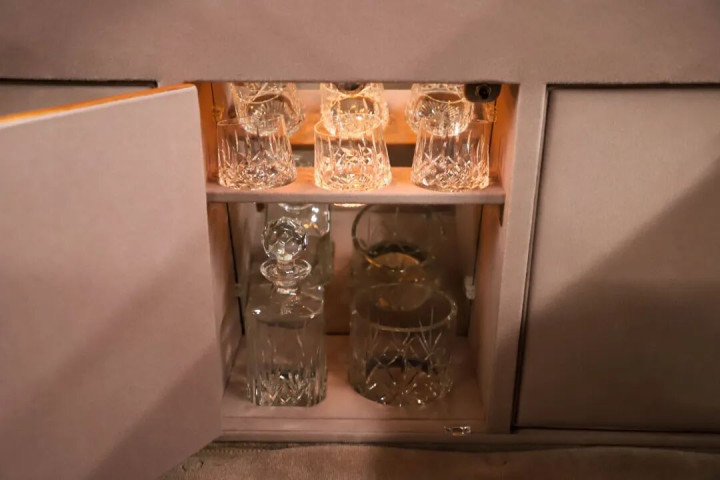 车内更是战前恣虐工艺的极致体现,细密的木质嵌入、细致的蚀刻玻璃、可折叠的反向备用座椅,每一处细节齐彰显入部属手工定制的回首。