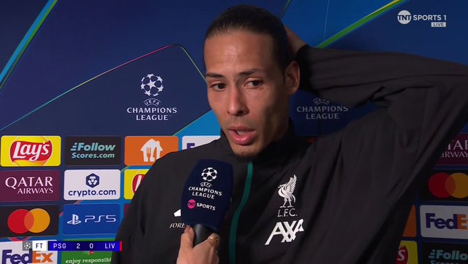 虎扑04月09日讯利物浦队长范戴克在0-2输给巴黎圣日耳曼的欧冠首回合赛后,遴选TNTSport瞬采。